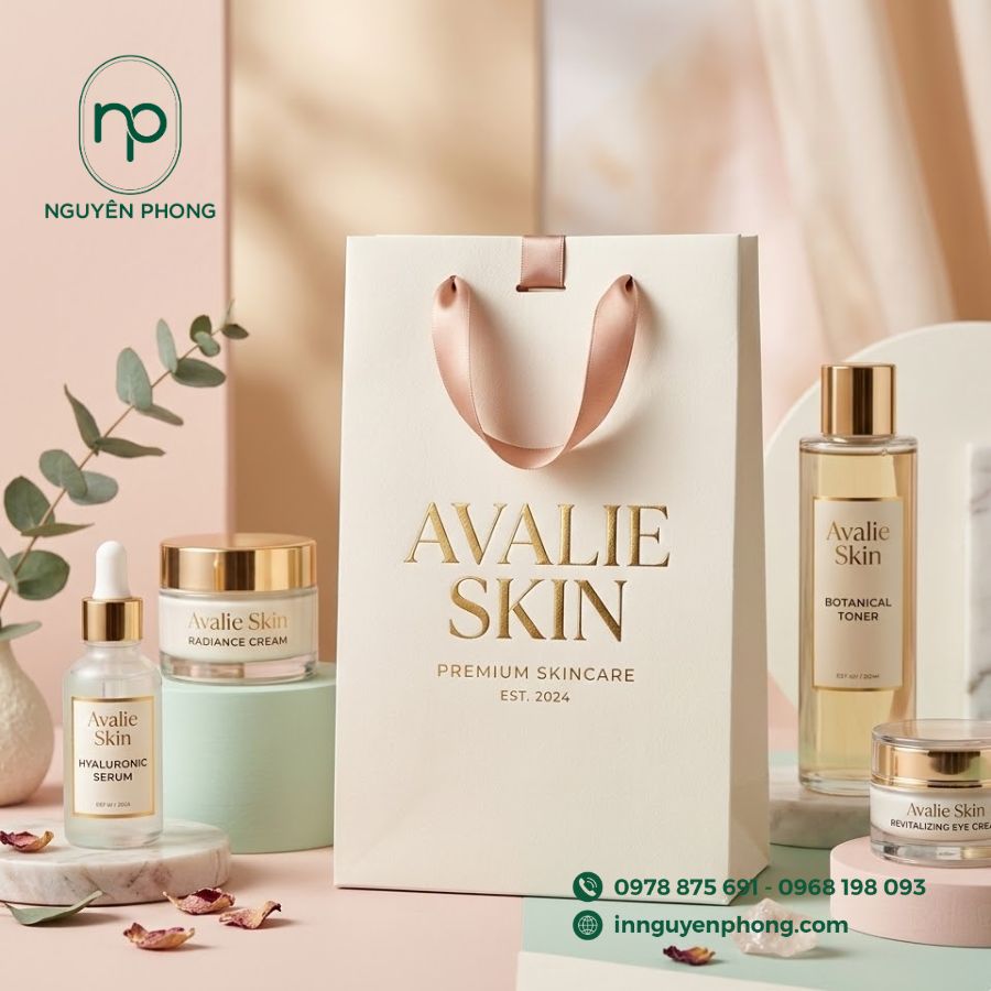 Dịch vụ 1–1 của Nguyên Phong không chỉ giúp thương hiệu mỹ phẩm sở hữu những mẫu túi giấy ấn tượng mà còn tối ưu hóa quy trình làm việc, rút ngắn thời gian triển khai, nâng cao hiệu quả truyền thông và xây dựng hình ảnh chuyên nghiệp trên thị trường.